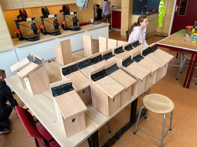 Uiteindelijk maken ze hun eigen nestkastje die ze thuis mogen ophangen.
